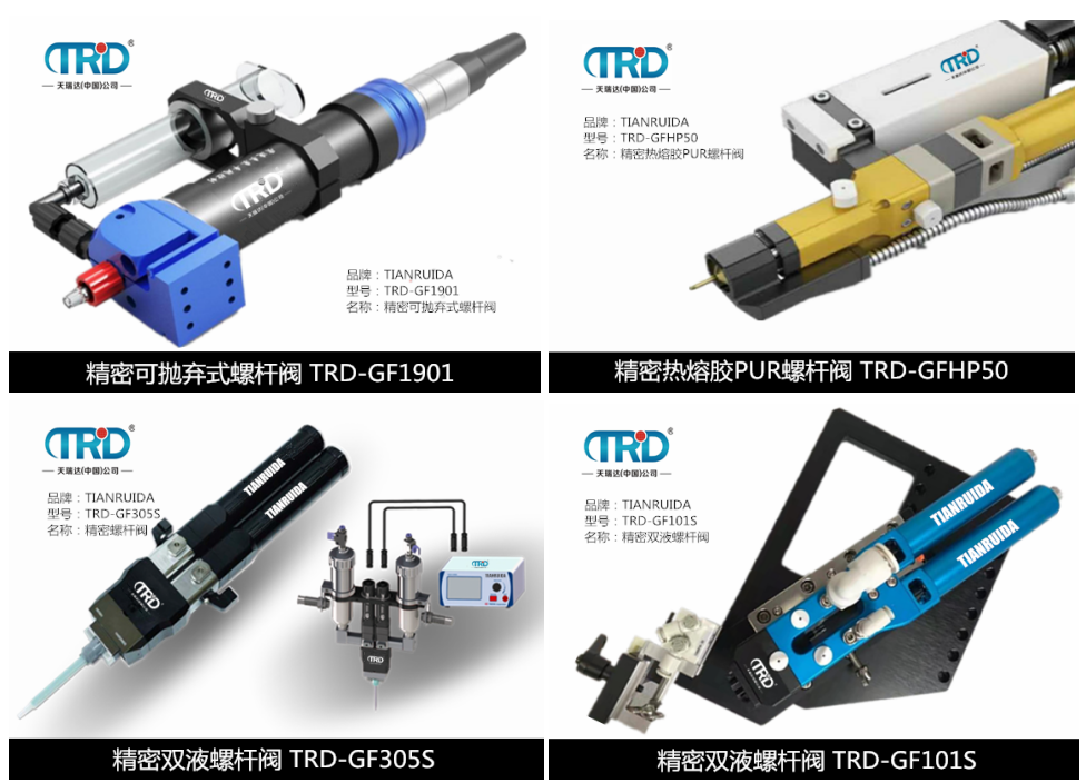 產品介紹TRD-GF101S精密雙液螺桿閥為精密、可重復性點涂而設計,通過結合螺旋供料技術,點膠時間、針筒壓力以及螺桿速度的精確控制,確保穩定一致的粘結,密封等效果。精確重復的點膠輸出、精密耐用的供料螺桿,可代替人工特定的點膠作業,實現機械自動化的生產。