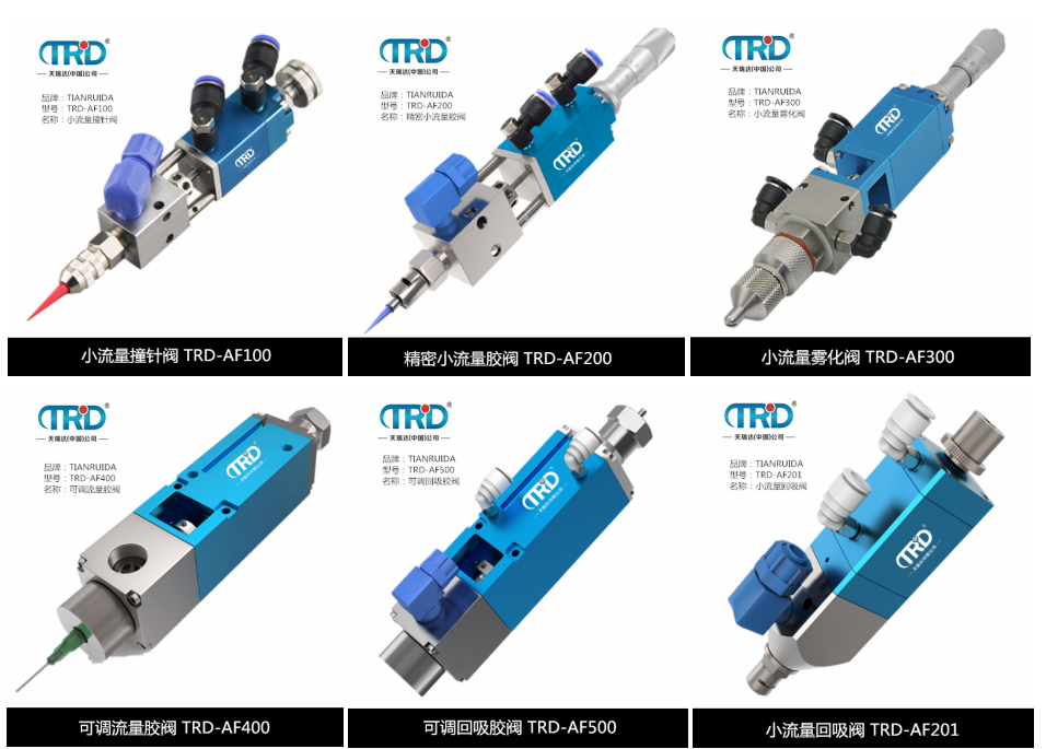 產品介紹TRD-AF201小流量回吸閥優選304不銹鋼+鋁合金,精工鑄造而成結構質密,不漏氣,不漏膠,耐磨耐腐蝕,使用壽命長。回吸式斷膠,輔助進氣口空氣輔助閉合,適用UV膠、白乳膠、潤滑脂、油墨等單組份液體,電子行業、照明行業、汽車行業、工業電氣、太陽能光伏等行業