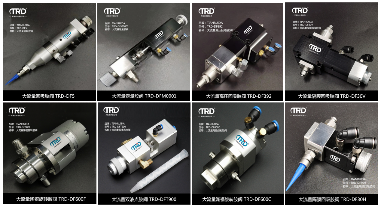 產(chǎn)品介紹TRD-DFM001大流量定量膠閥定量閥一般用在產(chǎn)品裝配前,在軸,軸承,齒輪,凸輪等有摩擦副的位置進(jìn)行定時(shí)、定量精確加注、涂抹油脂的一種新型閥體,具有集成度高、安裝方便、維修簡(jiǎn)便、自動(dòng)化程度高,勞動(dòng)強(qiáng)度低、性能穩(wěn)定、加注油方便等特點(diǎn)。廣泛用于電動(dòng)玩具、電動(dòng)工具、家用電器、汽車零部件等裝配生產(chǎn)線。由于油脂是高壓的,是普通點(diǎn)膠閥不可替代的。