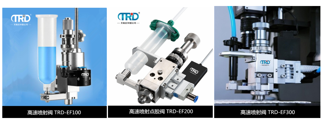 TRD-EF100高速噴射閥有著設計合理,結構 緊湊,體積小巧等優點,同時其觸摸屏界面可以靈活簡易進行參數設置,獨立的溫度控制、獨立的氣源控能,0.1ms 的增量調整脈沖時間,能夠以高達 250HZ 的速度持續并循環靈活地噴涂大多數粘度的流體材料??纱嫒斯ぬ囟ǖ狞c膠作業,實現機械自動化的生產。
